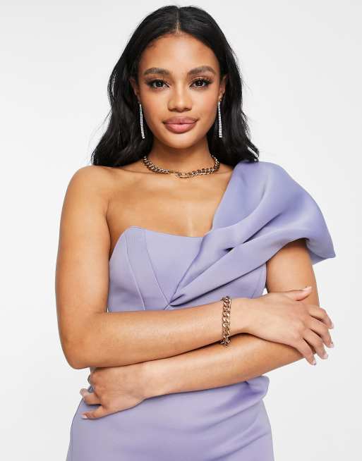 ASOS DESIGN one shoulder seamed bust midi dress with high leg split in baby blue Very well made.