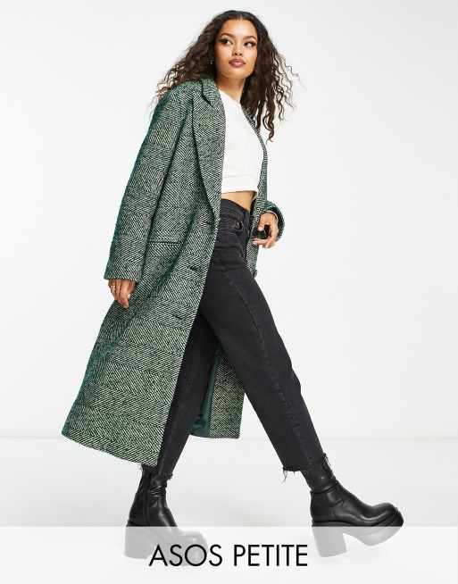 ASOS DESIGN Petite twill wool mix dad coat in green Very well made.