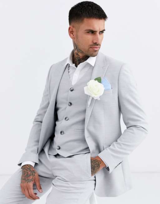 ASOS DESIGN wedding super skinny suit pants in stone micro texture Very well made.