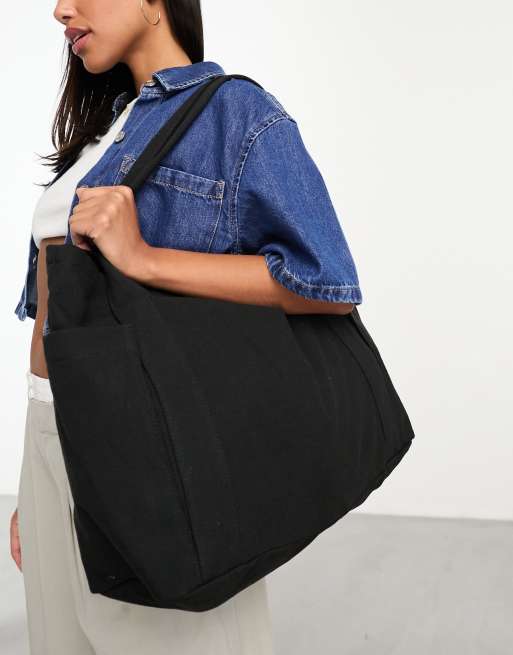 ASOS DESIGN oversized heavyweight canvas tote bag in black Very well made.