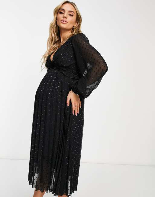 ASOS DESIGN Maternity button detail ruched waist pleated midi Very well made.