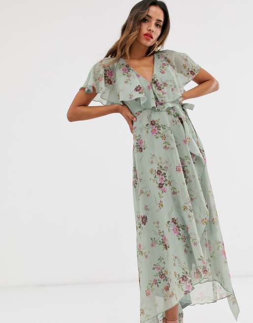ASOS DESIGN cape back dipped hem maxi dress in waterlily print Very well made.