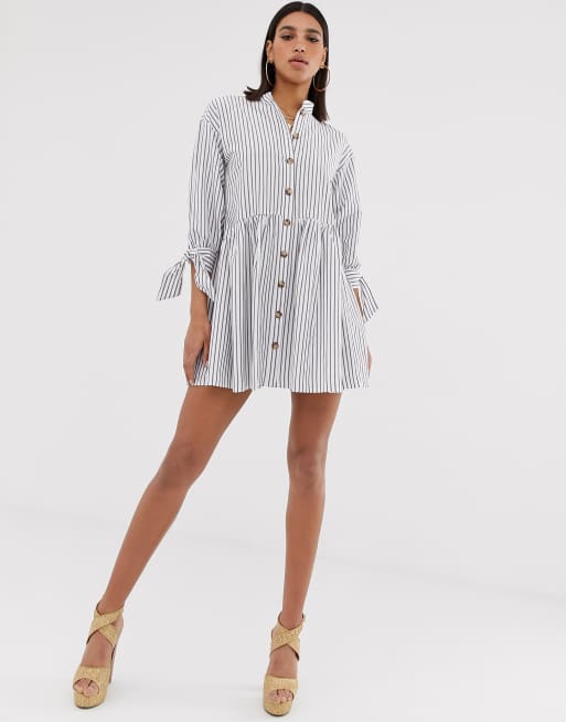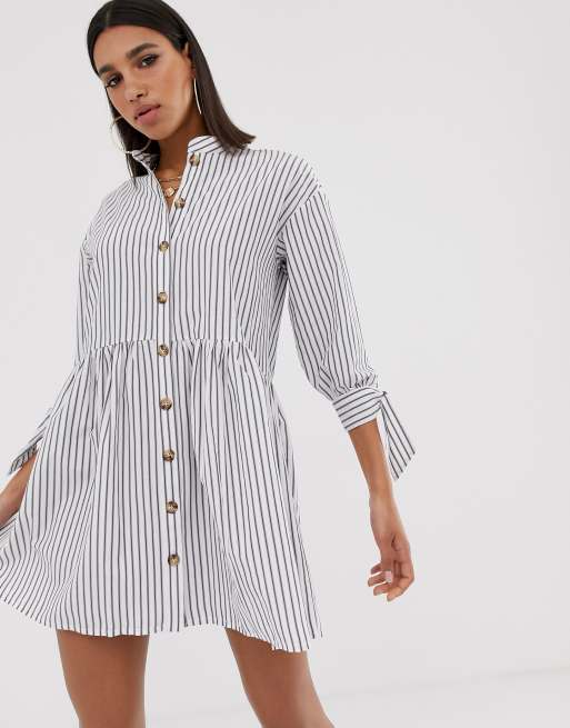 ASOS DESIGN grandad collar button through mini smock dress with tie sleeve in stripe Very well made.