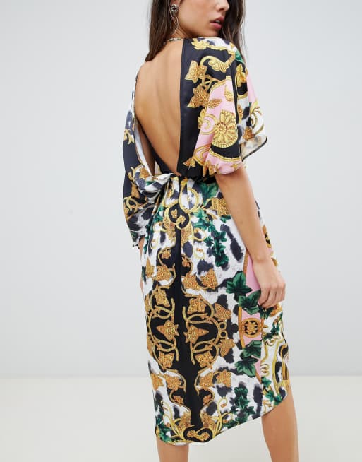 ASOS DESIGN satin kimono midi dress with knot front and asymmetric sleeve in chain print Very well made.
