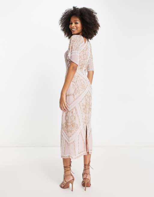 ASOS DESIGN embellished floral flutter sleeve halter midi dress in Very well made.