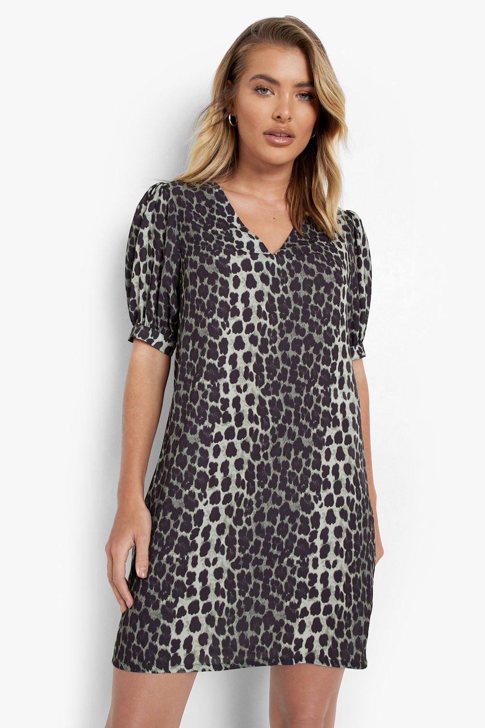 Leopard Print Plunge Puff Sleeve Shift Dress Very well made.