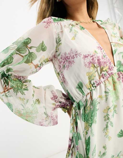 ASOS DESIGN pleated layered tiered midi dress with lace trim in cream based floral print Very well made.