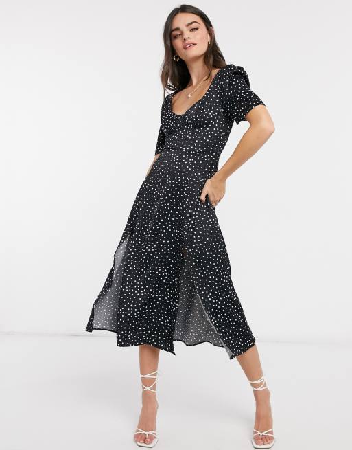 New Look long sleeve wrap midi dress in black polka dot Very well made.