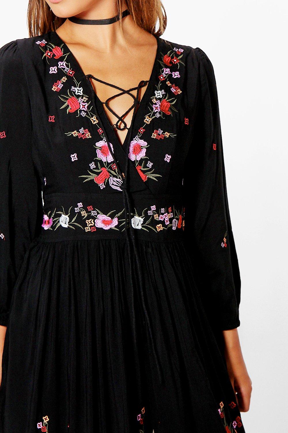 Boohoo Occasion Floral Embroidery Wrap Skater Dress boohoo Very well made.