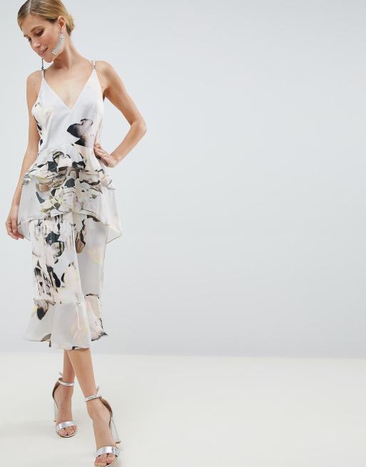 ASOS DESIGN pleated layered tiered midi dress in navy floral print with lace trim Very well made.