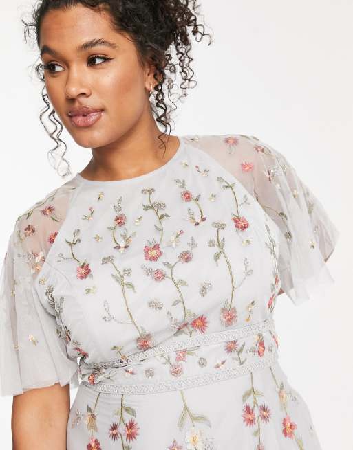 ASOS DESIGN Curve Bridesmaid floral embroidered maxi dress with embellishment in soft blue Very well made.