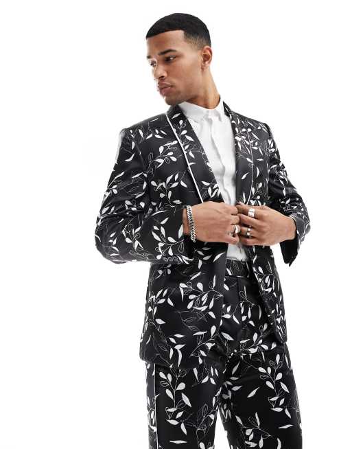 ASOS DESIGN skinny suit jacket in black floral print with white Very well made.