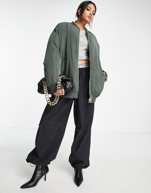 Threadbare oversized bomber jacket in khaki Very well made.