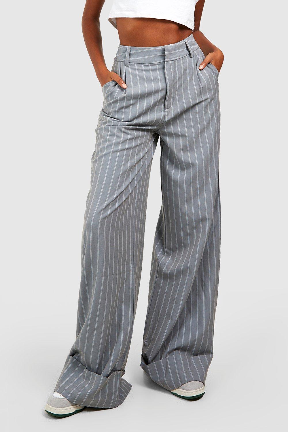 Premium Pinstripe Wide Leg Turn Cuff Dress Pants Very well made.