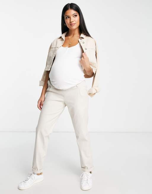 ASOS DESIGN Maternity chino trousers in stone with under the bump band Very well made.