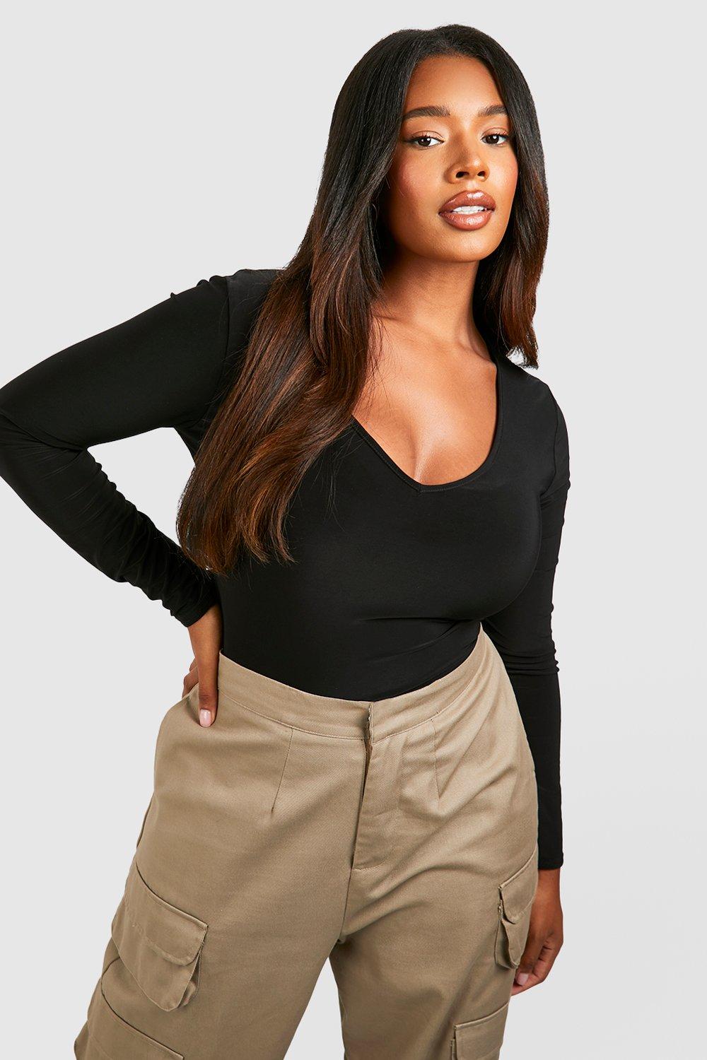 Plus V Neck Long Sleeve Bodysuits Very well made.