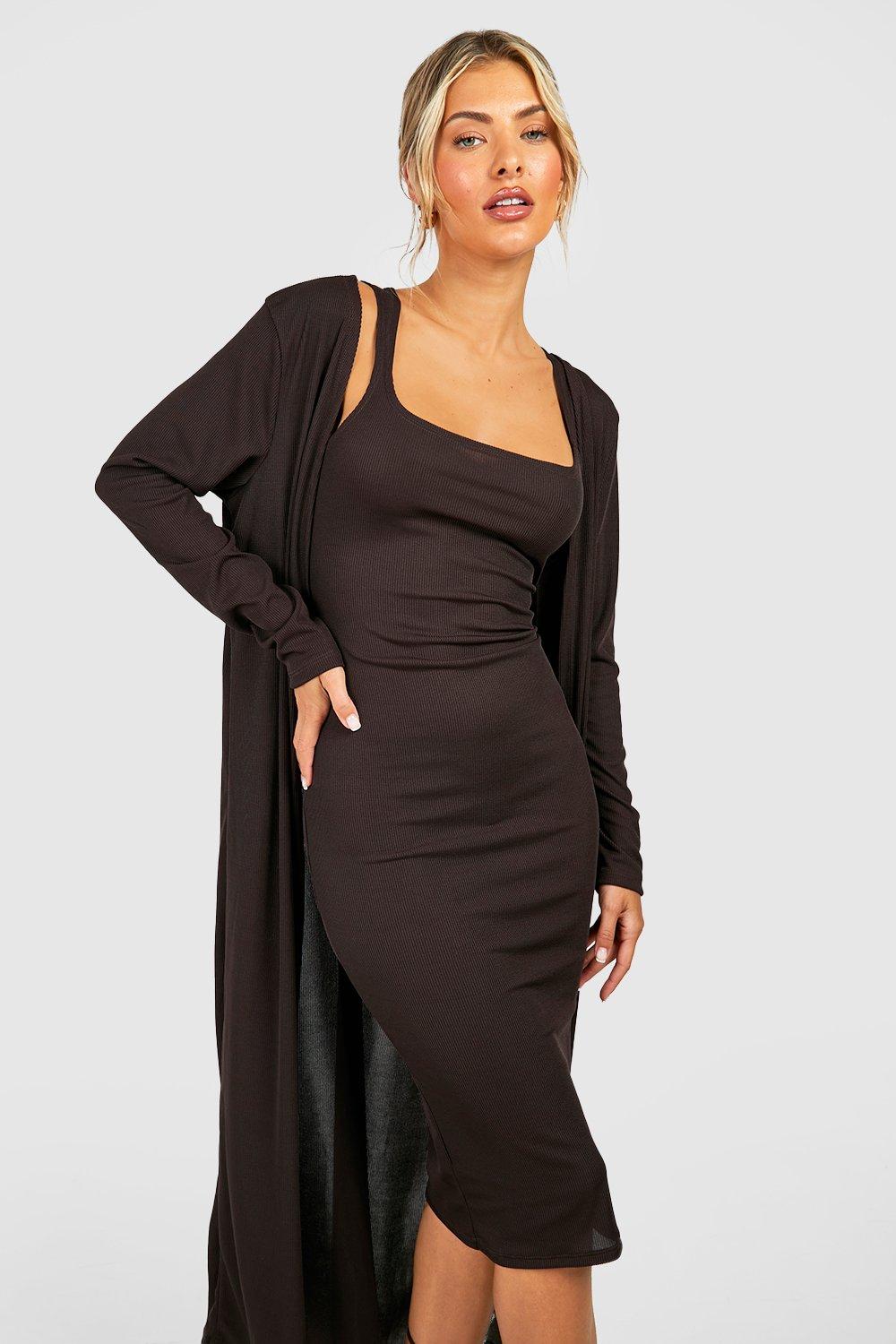 Ribbed Midi Dress And Duster Set boohoo Very well made.