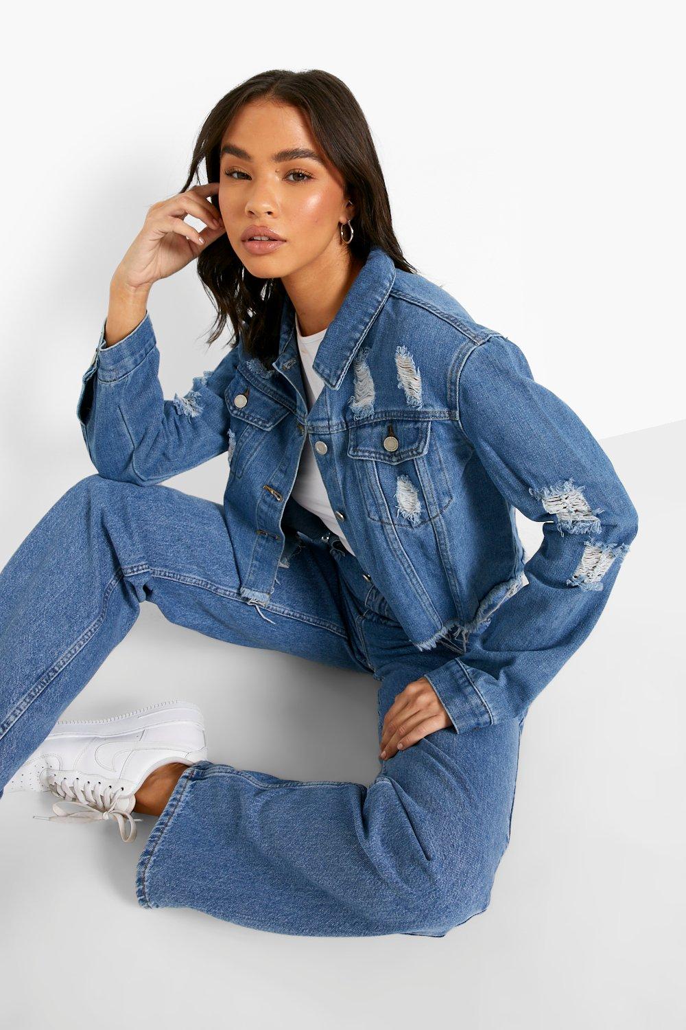 Boxy Denim Jacket With Distressed Detail Very well made.