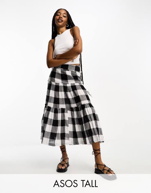 ASOS DESIGN Tall satin bias midi skirt in white check jacquard Very well made.