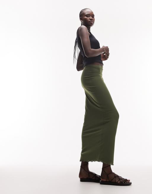 Topshop Tall mesh lace trim midi skirt in khaki ASOS Very well made.