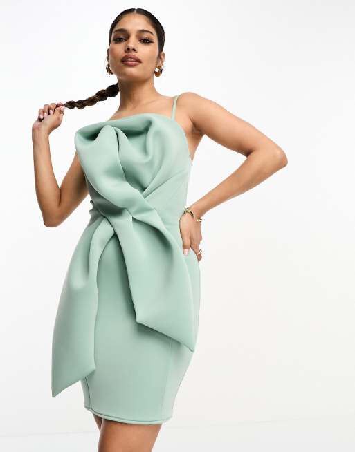 ASOS DESIGN Bridesmaid satin maxi dress with asymmetric bow back in sage Very well made.