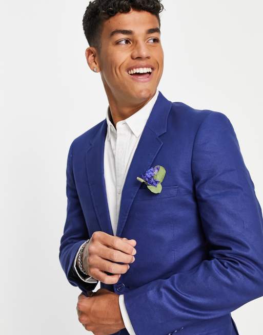 ASOS DESIGN wedding skinny suit jacket in navy linen mix Very well made.