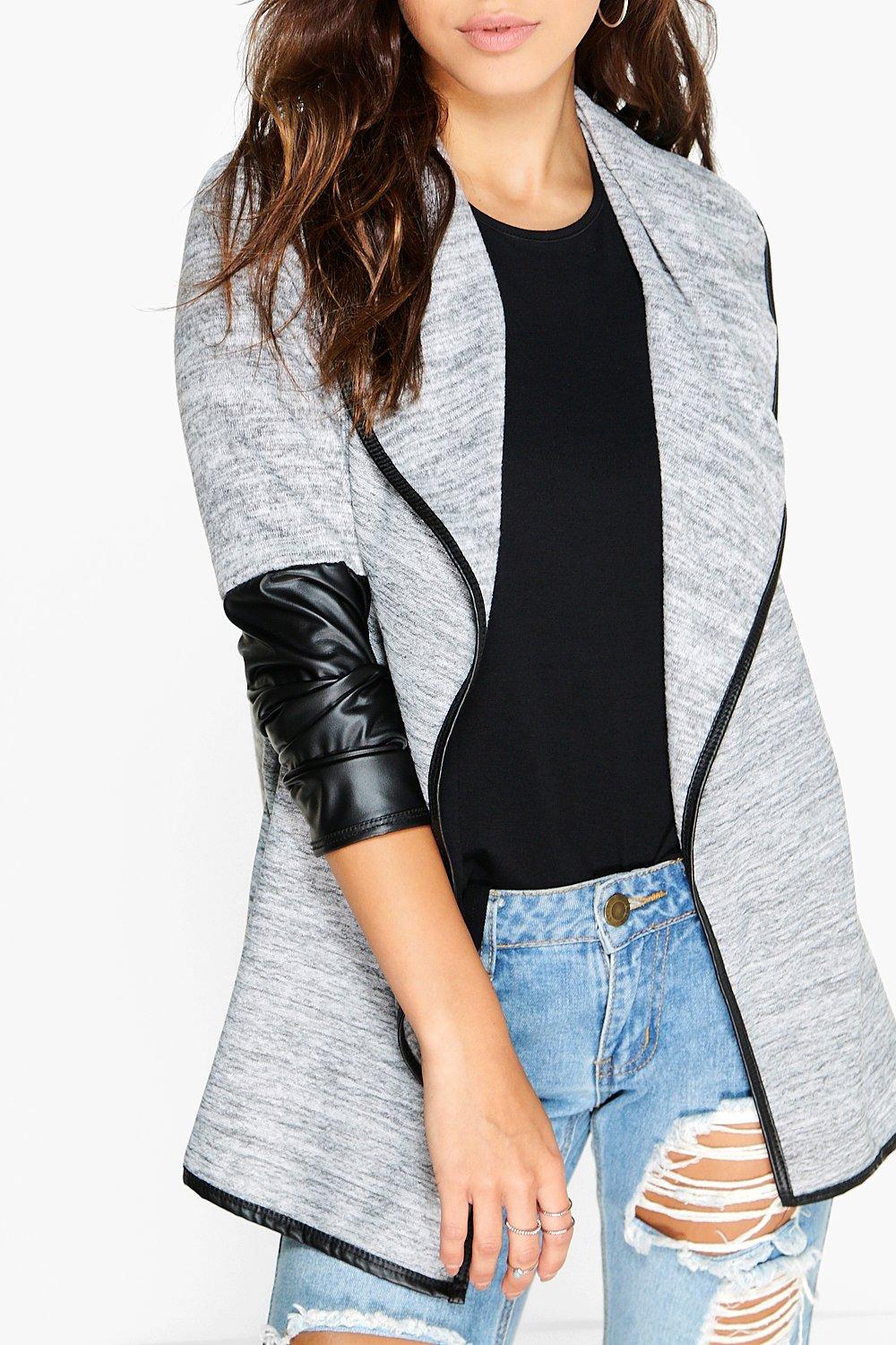 Anna Faux Leather Sleeve Waterfall Cardigan Very well made.