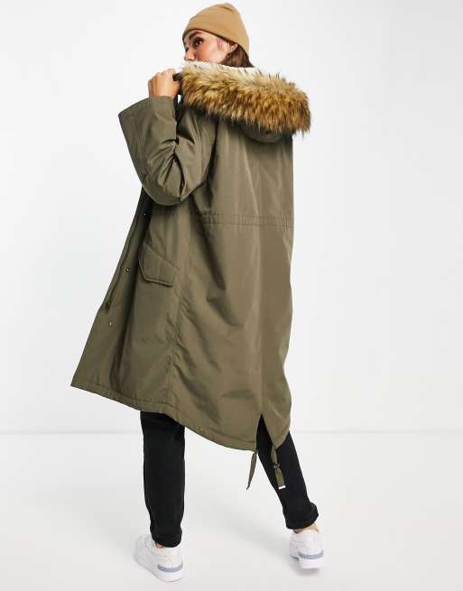 ASOS DESIGN oversized sherpa lined parka coat in dark khaki Very well made.