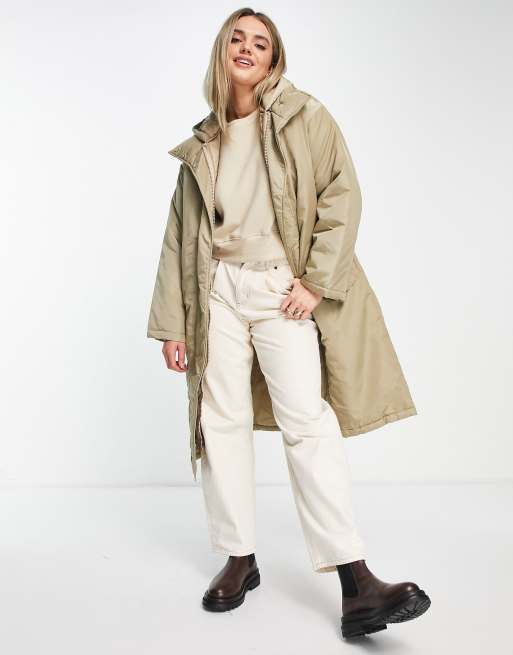 ASOS DESIGN quilted double layer parka coat in stone ASOS Very well made.