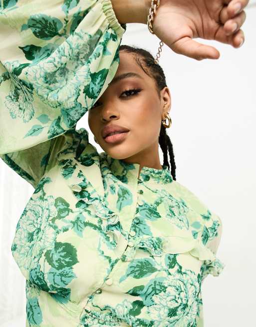ASOS DESIGN cotton midi smock dress in cream based green floral print Very well made.