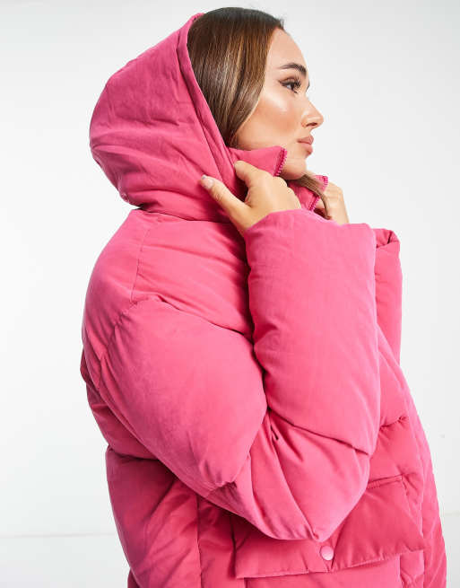 ASOS LUXE wrap puffer coat in hot pink Very well made.