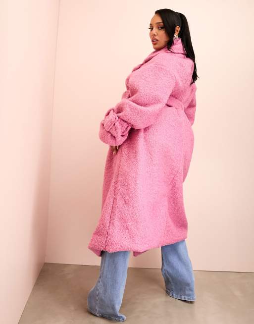 ASOS LUXE Curve borg long line trench coat with belted waist in pink Very well made.