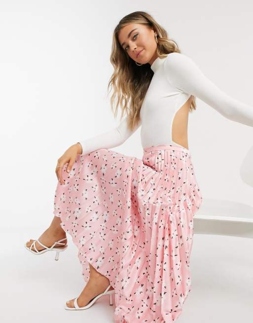 ASOS DESIGN satin pleated midi skirt in pink floral print Very well made.