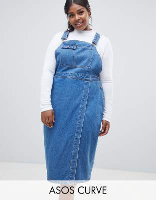 ASOS DESIGN Curve denim midi dungaree dress in midwash blue Very well made.