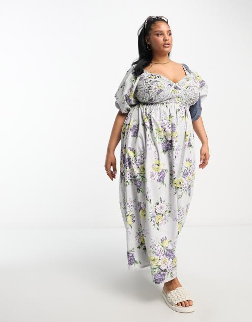 ASOS DESIGN Curve cotton shirred corset midi dress in floral print Very well made.
