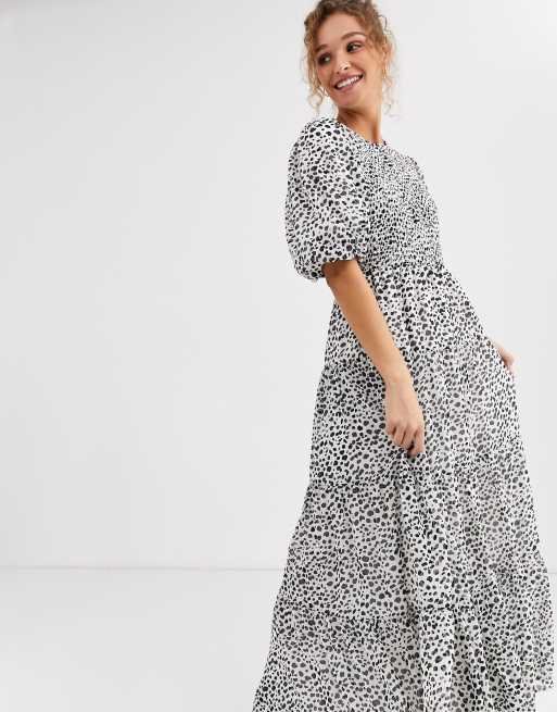 ASOS DESIGN shirred tiered maxi dress in mono polka dot Very well made.
