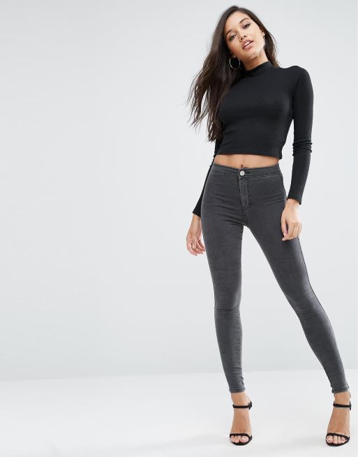 ASOS DESIGN Rivington high waist denim jeggings in dark grey Very well made.