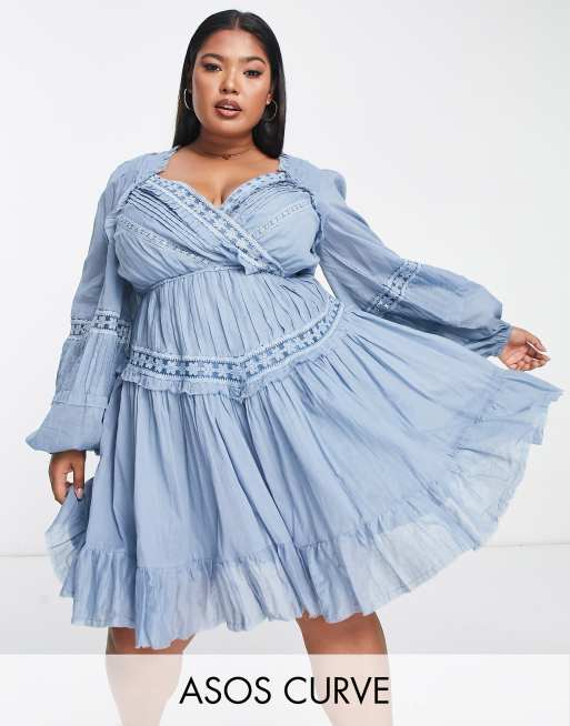 ASOS DESIGN Curve Robe courte en dentelle nervures Bleu cendr Very well made.