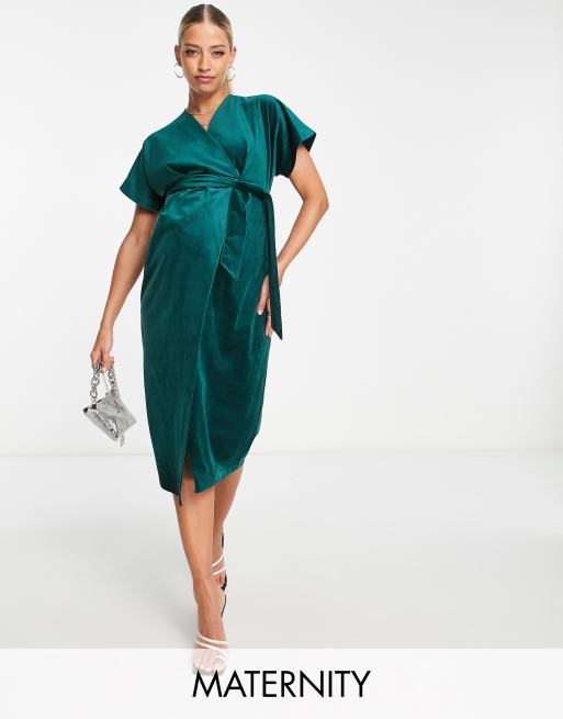 Closet London Robe mi longue de grossesse manches kimono en velours avec lien la taille meraude Very well made.