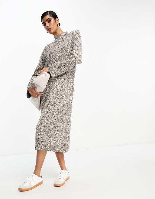 Selected Femme Robe pull courte en maille tachet e Marron cr me Very well made.