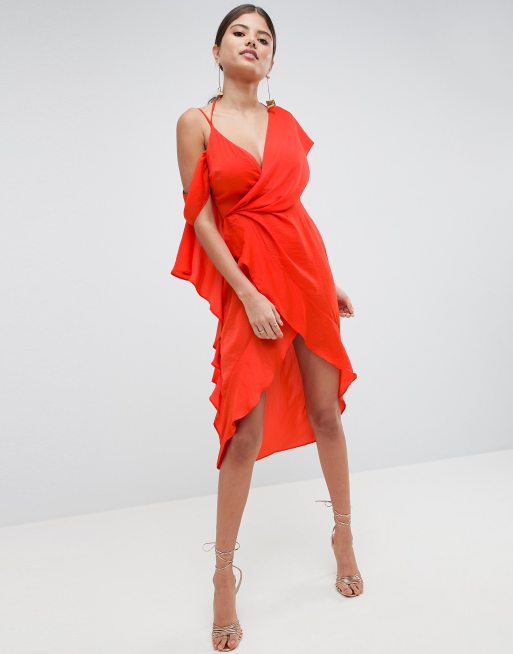 ASOS DESIGN Robe fourreau mi longue sexy drap e asym trique en satin Very well made.
