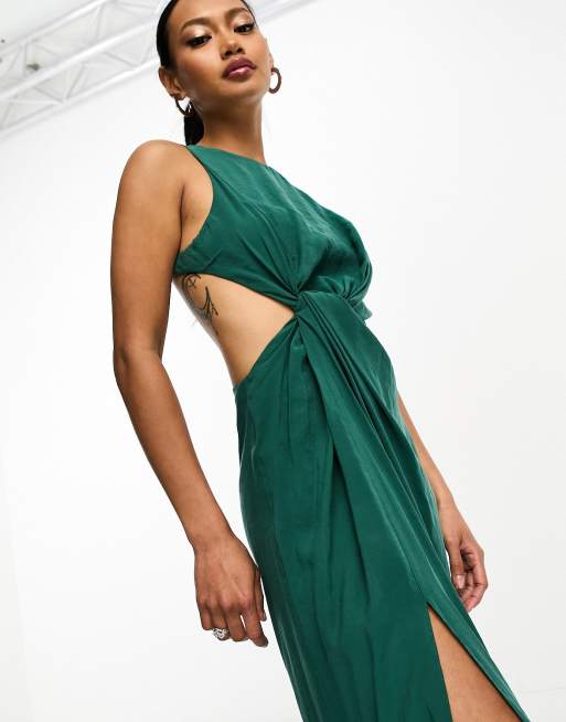 ASOS DESIGN Robe longue taille torsad e avec d coupe au dos Vert for t d lav Very well made.