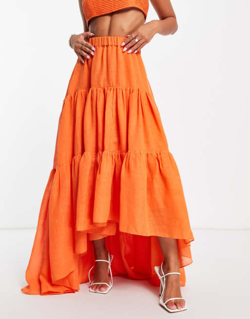 ASOS DESIGN voile tiered maxi skirt with high low hem in orange part of a set Very well made.