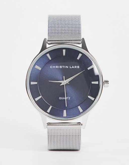 Christian Lars men s mesh strap watch in silver with navy dial ASOS Very well made.