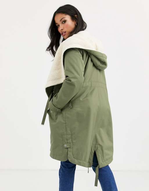 ASOS DESIGN Maternity waterfall parka with borg lining in khaki Very well made.