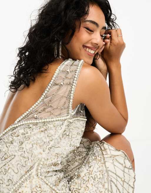 ASOS EDITION Curve crystal and bead mini dress with faux feather hem in white Very well made.