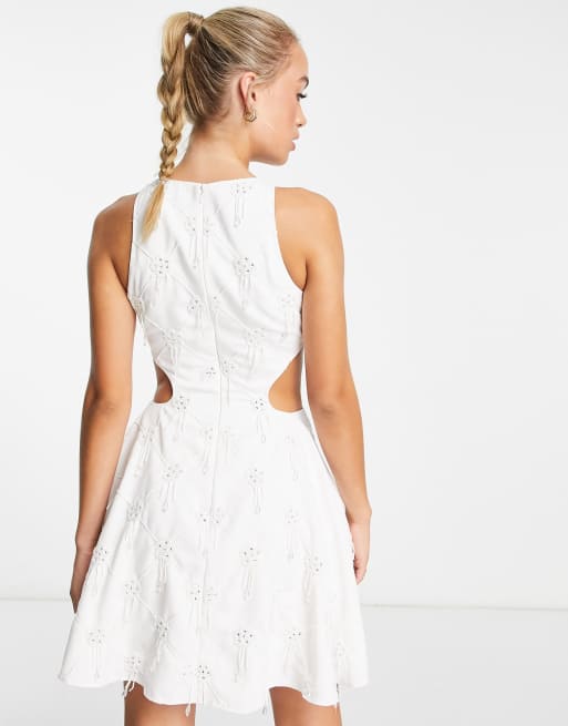 ASOS DESIGN embellished structured mini dress with beaded floral detail in white Very well made.