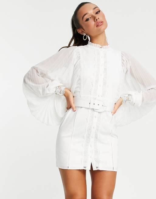 ASOS DESIGN mini dress with pleated sleeve and guipure lace trim in white Very well made.