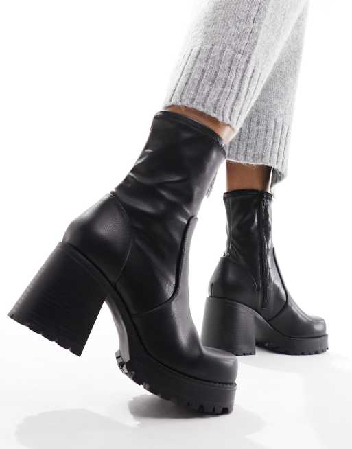 ASOS DESIGN Wide Fit Retreat mid heeled sock boots in black ASOS Very well made.