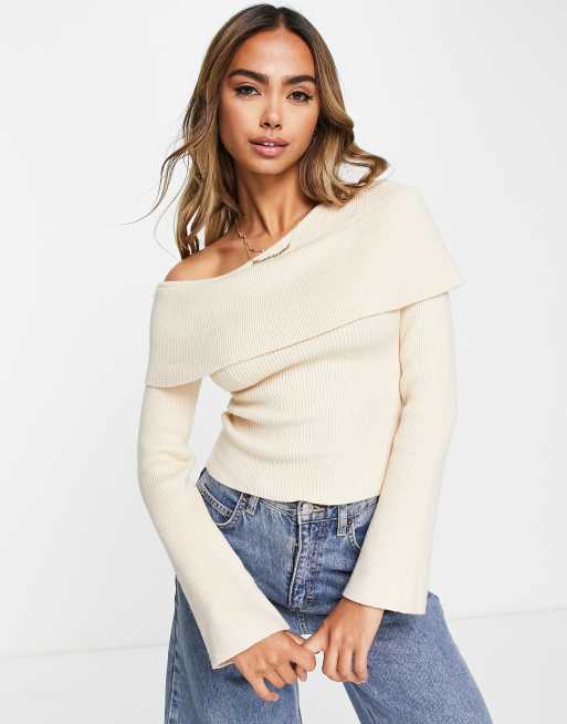 The Frolic ribbed asymmetrical sweater in cream Very well made.
